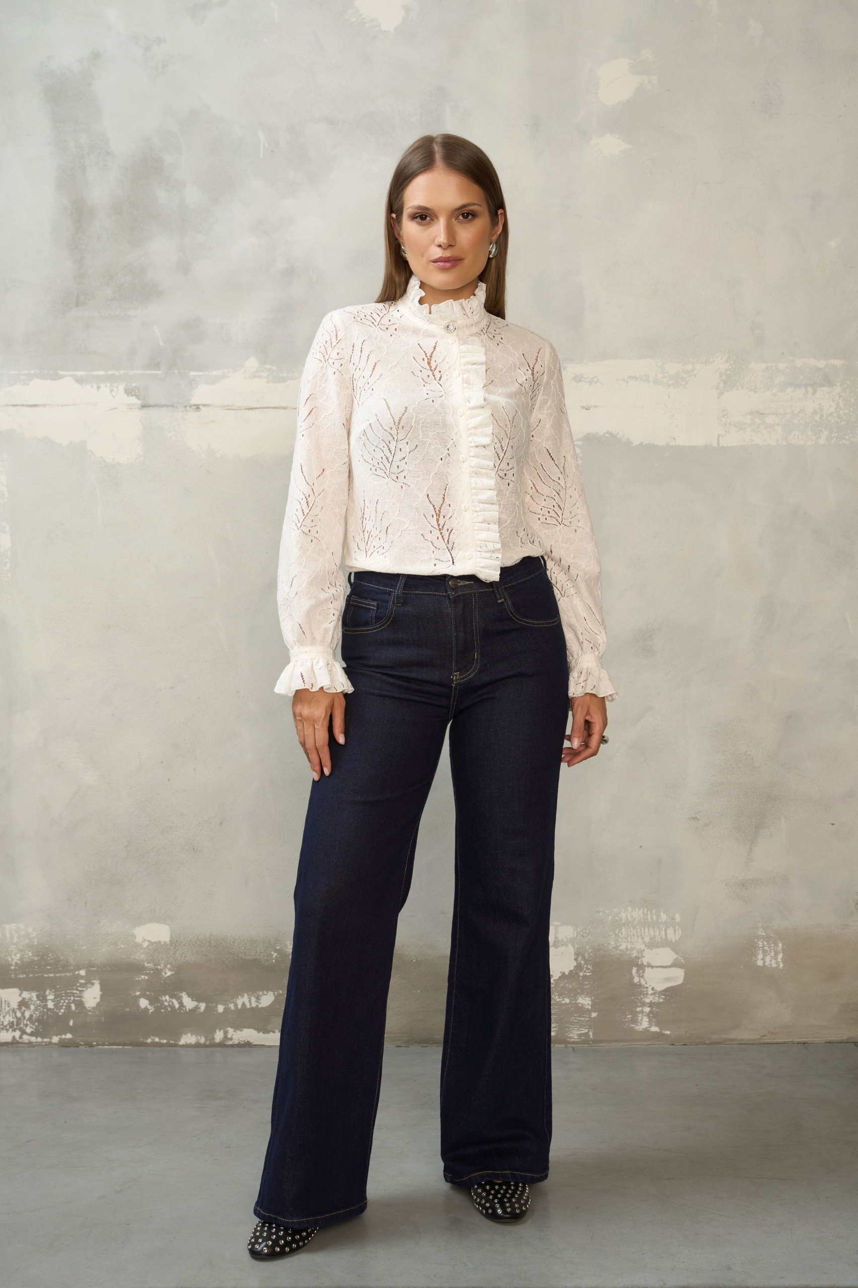 Biała koronkowa bluzka z długim rękawem AMANDA