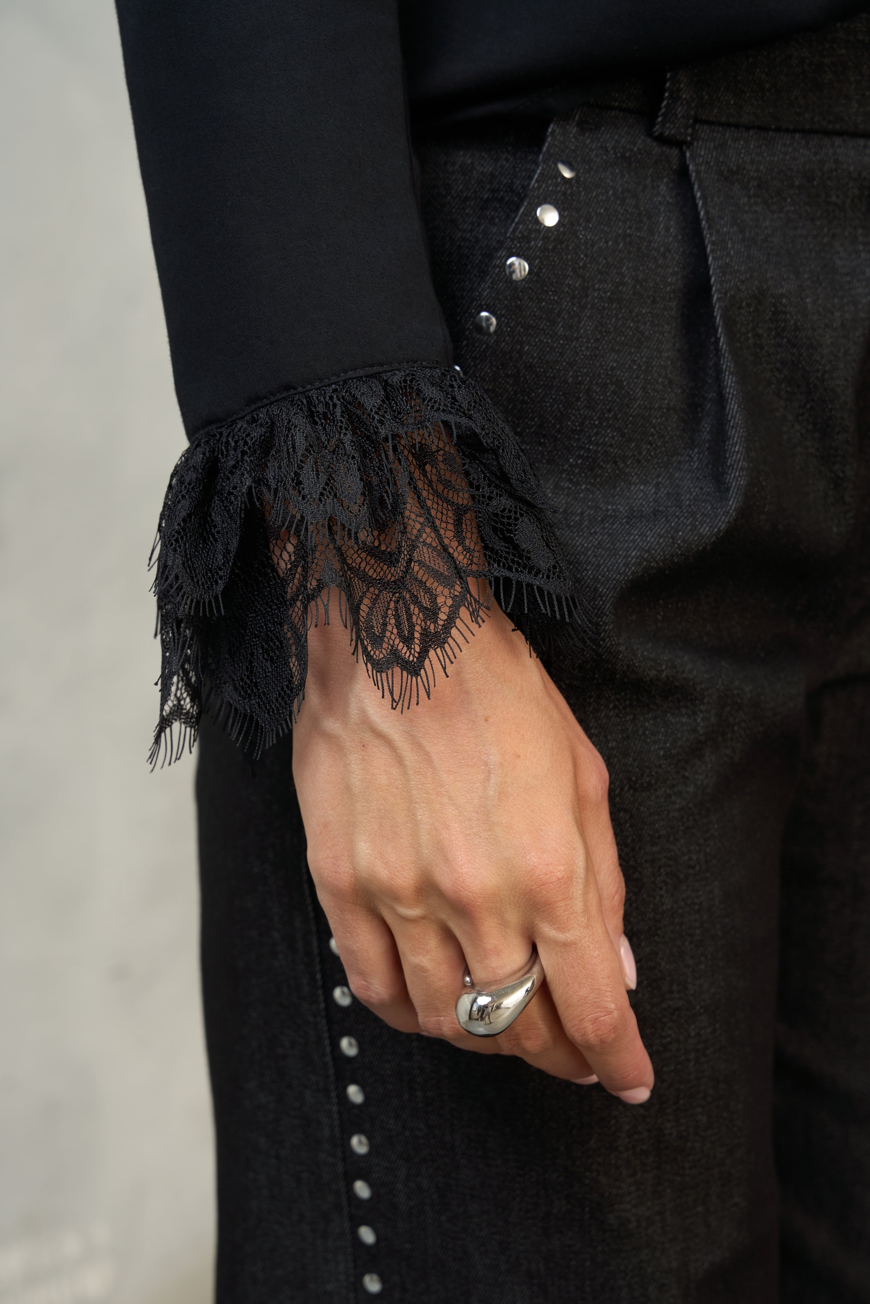 Delikatna koronka przy dekolcie i mankietach dodaje charakteru, a klasyczny krój sprawia, że pasuje do wszystkiego — od jeansów po garnitur.