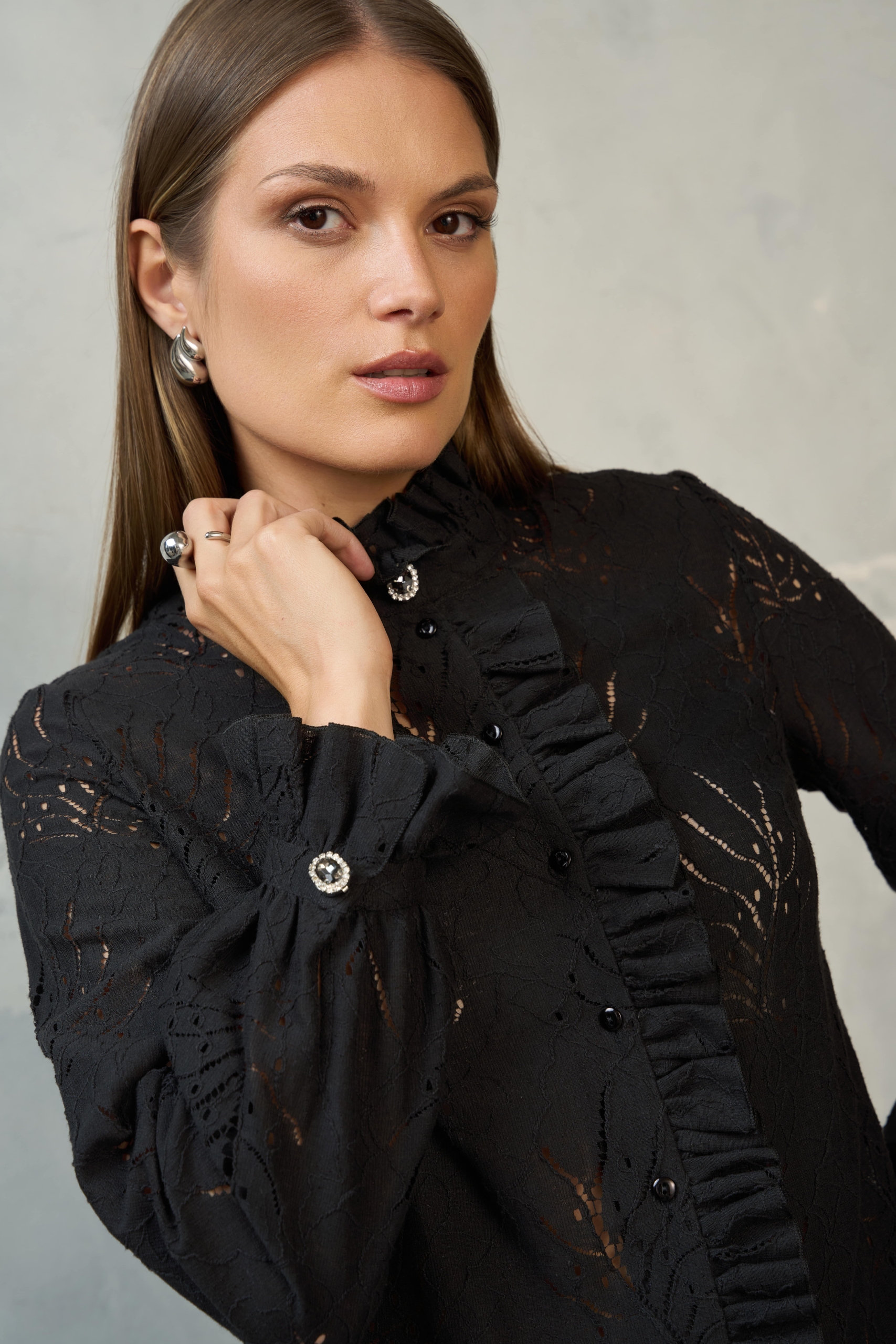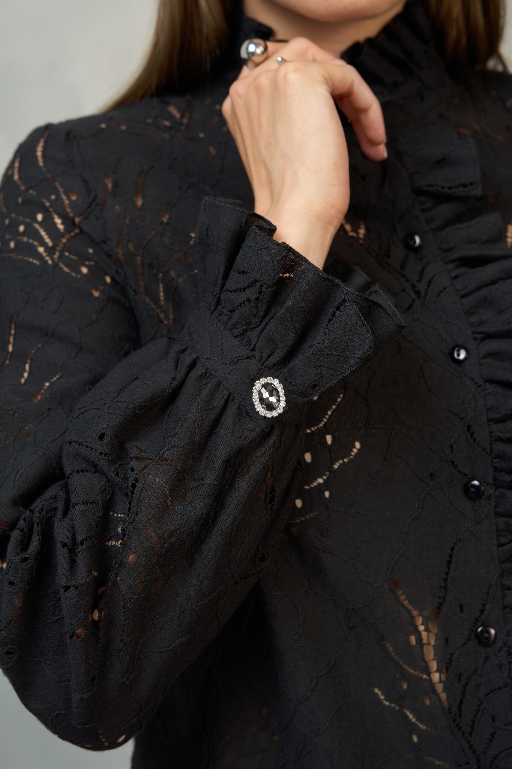 Czerń, koronka i wyrafinowane detale – „Amanda Black” to bluzka, która łączy w sobie kobiecą siłę i subtelny urok. Idealna do stylizacji, w których chcesz wyglądać wyjątkowo.