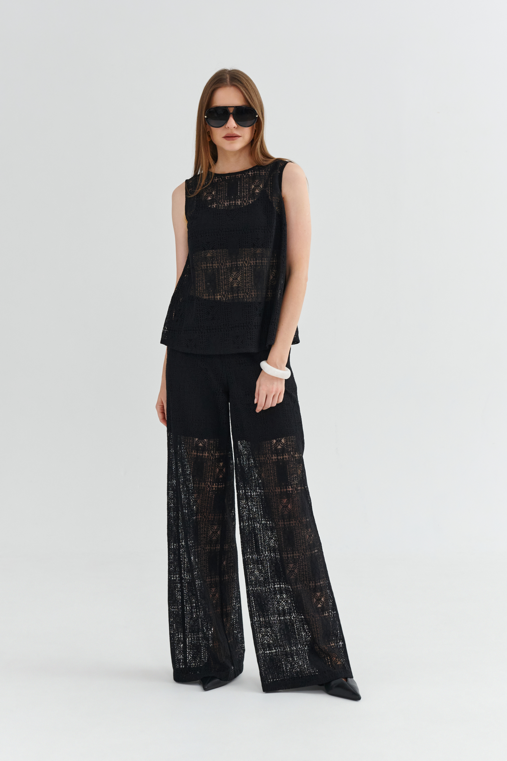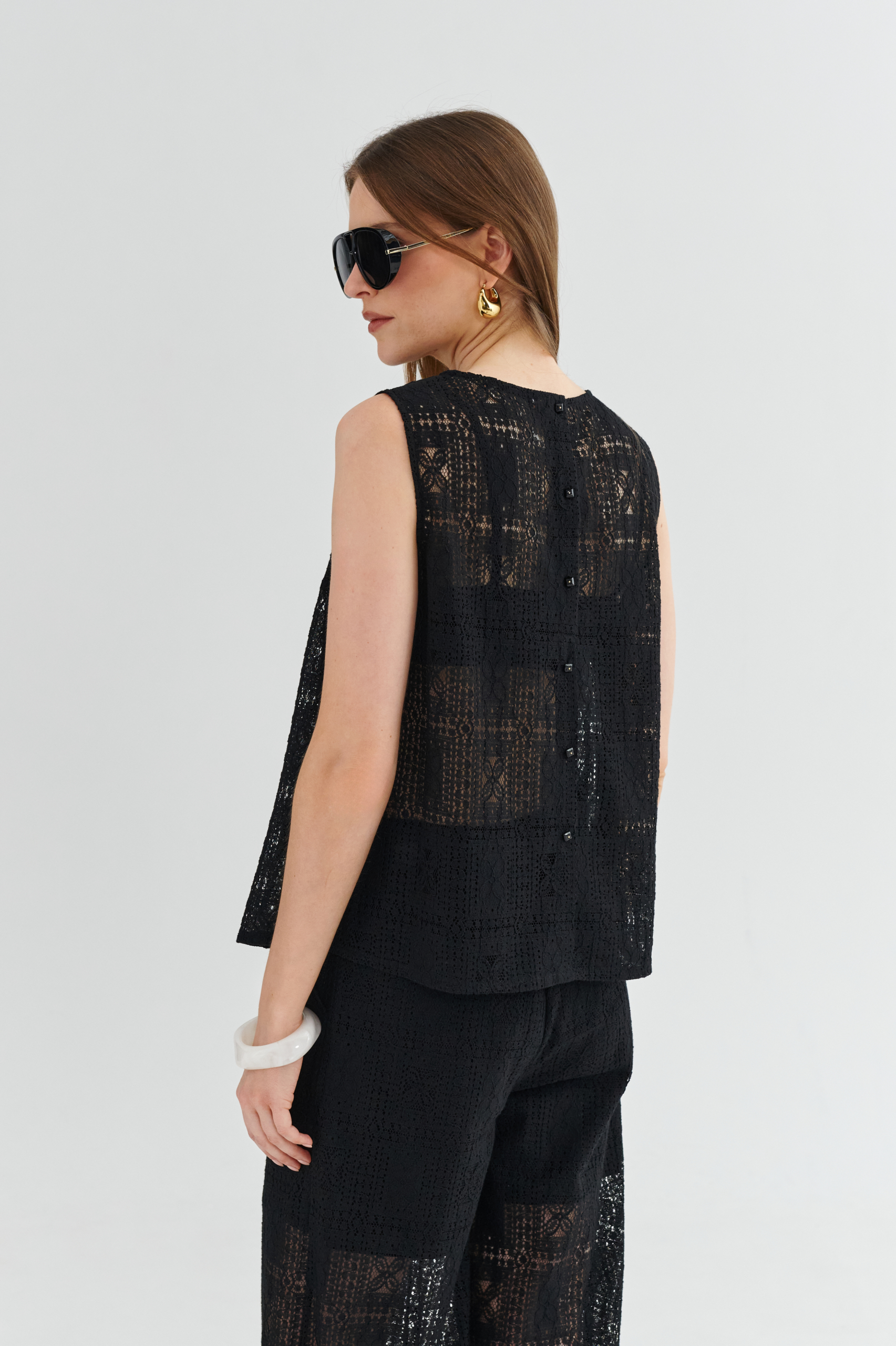 Czarna koronkowa bluzka bez rękawów to model, który wygląda nowocześnie, stylowo i bardzo kobieco.