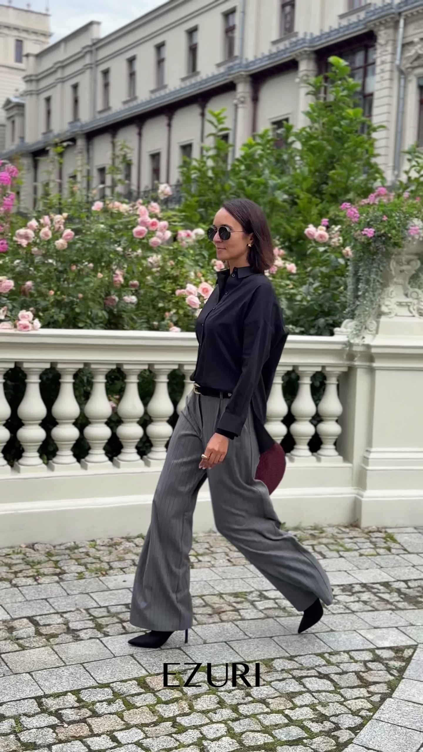 Ta koszula to baza, która nadaje charakter całej stylizacji. Czerń wysmukla sylwetkę i podkreśla szyk, a luźny, oversize’owy krój daje swobodę i nowoczesny look bez wysiłku.