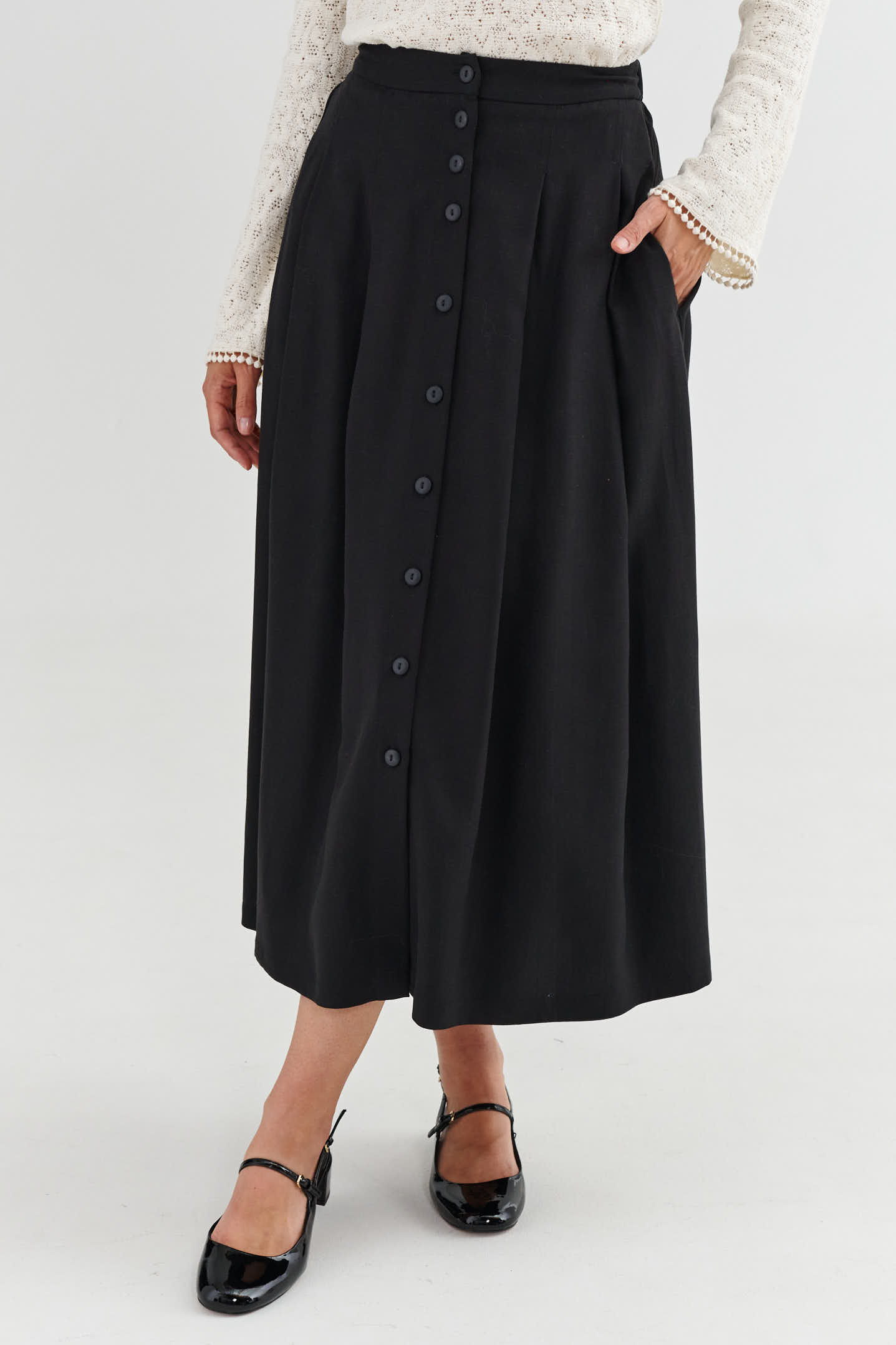 Czarna spódnica midi na guziki AMALFI