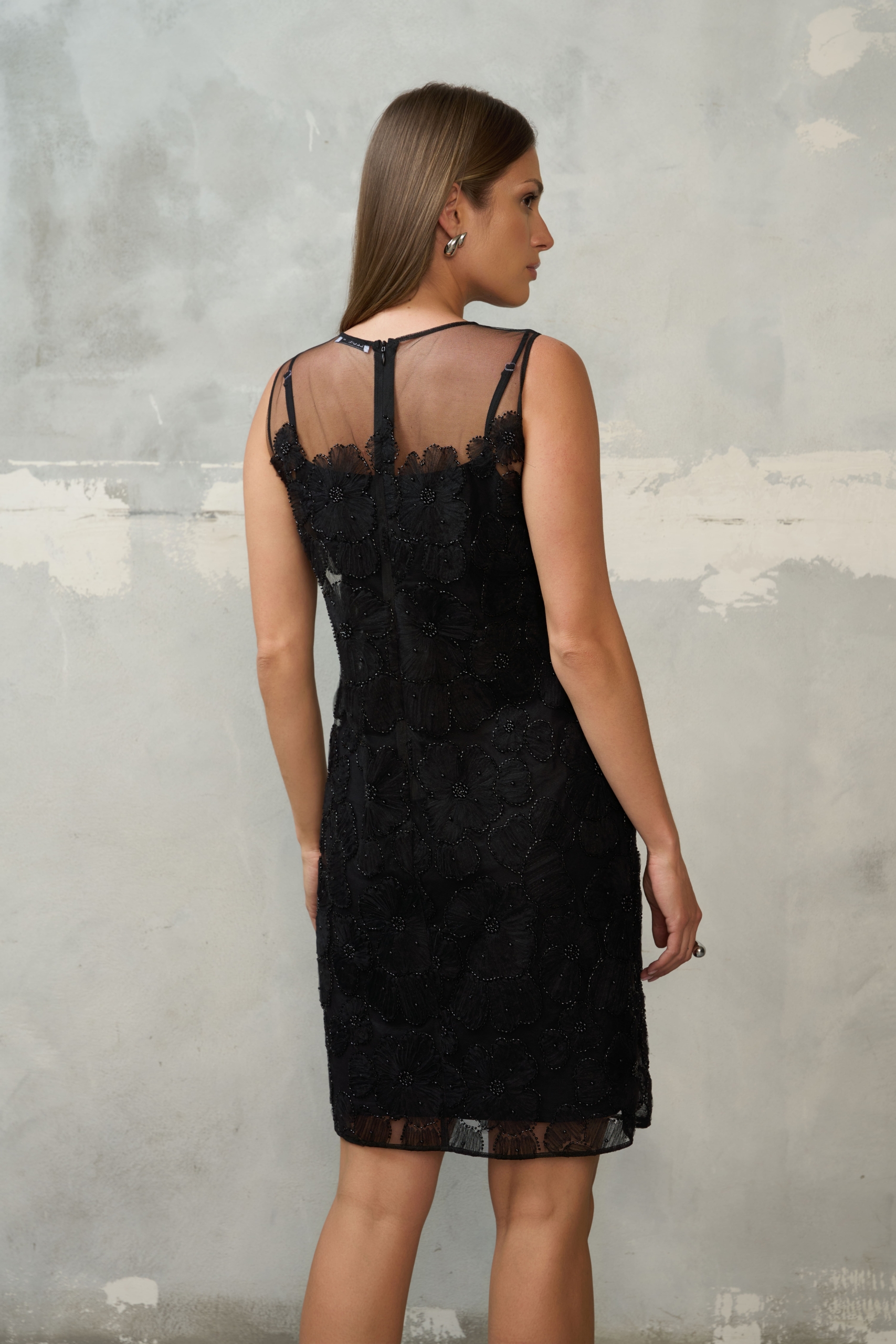 Czarna sukienka w kwiaty zdobiona koralikami – wieczorny efekt „wow”, który zostaje w pamięci
