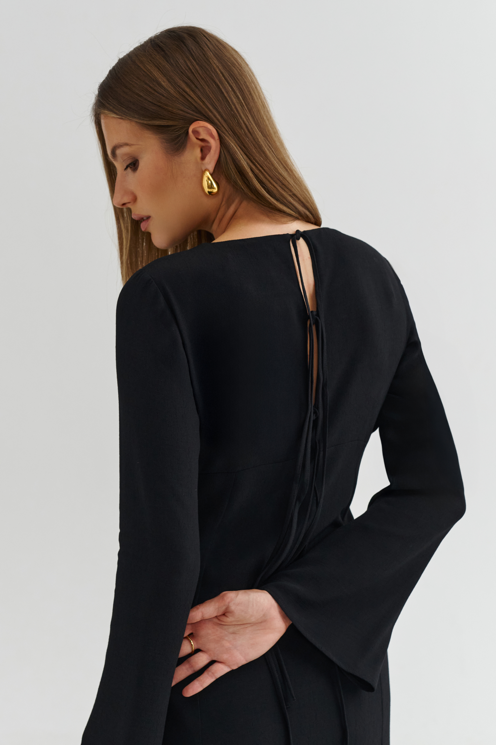 Elegancka długa czarna sukienka z długim rękawem EZURI
