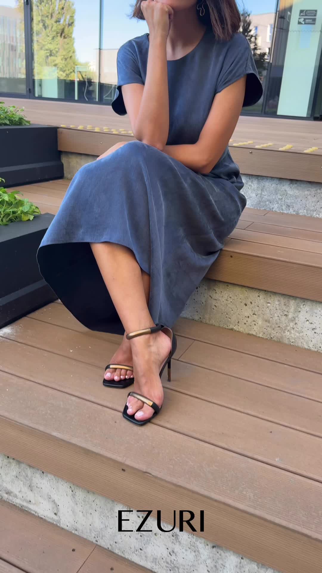 Minimalistyczny krój urozmaicony subtelnym drapowaniem w talii wysmukla figurę i nadaje całości charakteru. Delikatnie połyskująca tkanina układa się lekko i płynnie, tworząc efekt wyjątkowej elegancji.