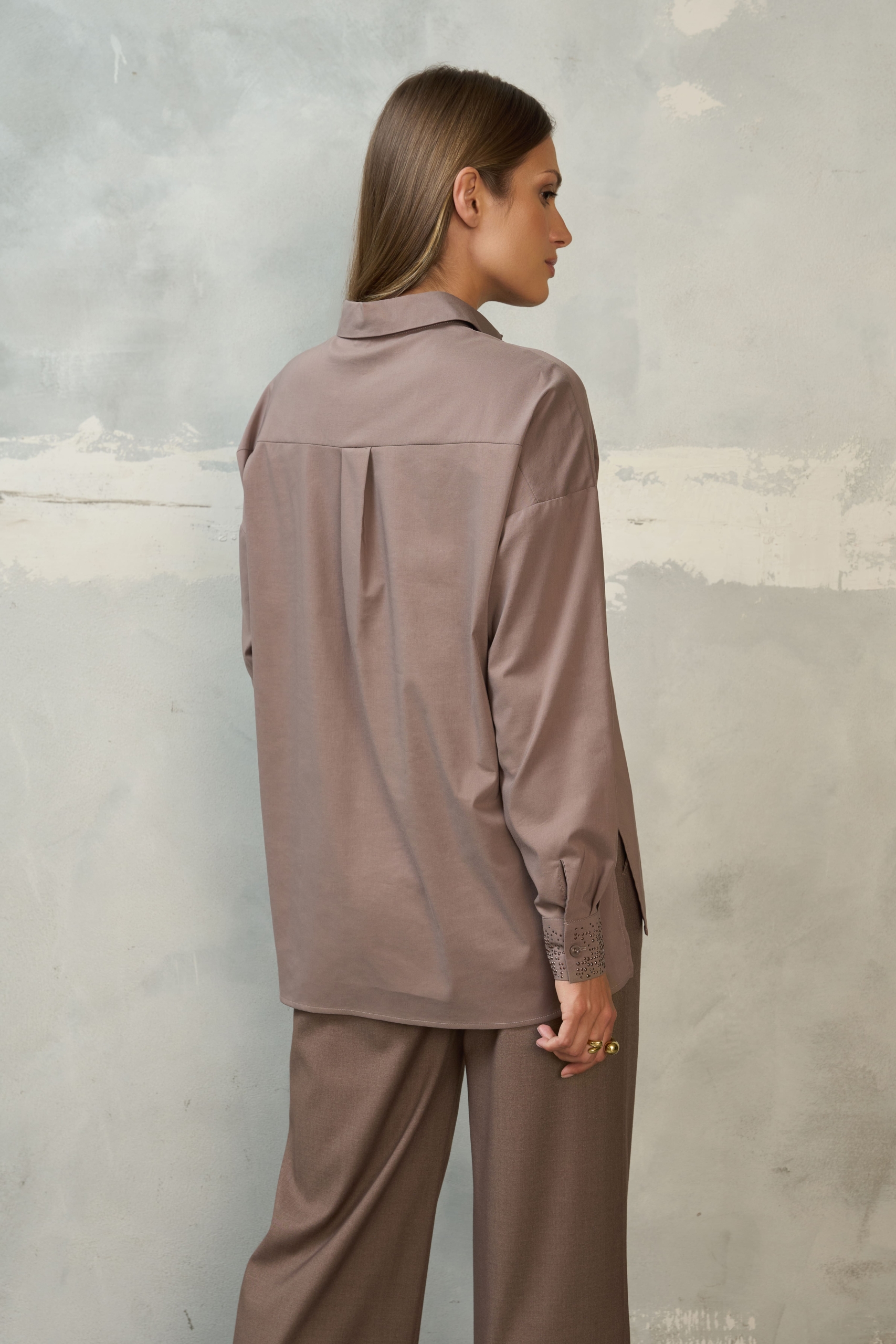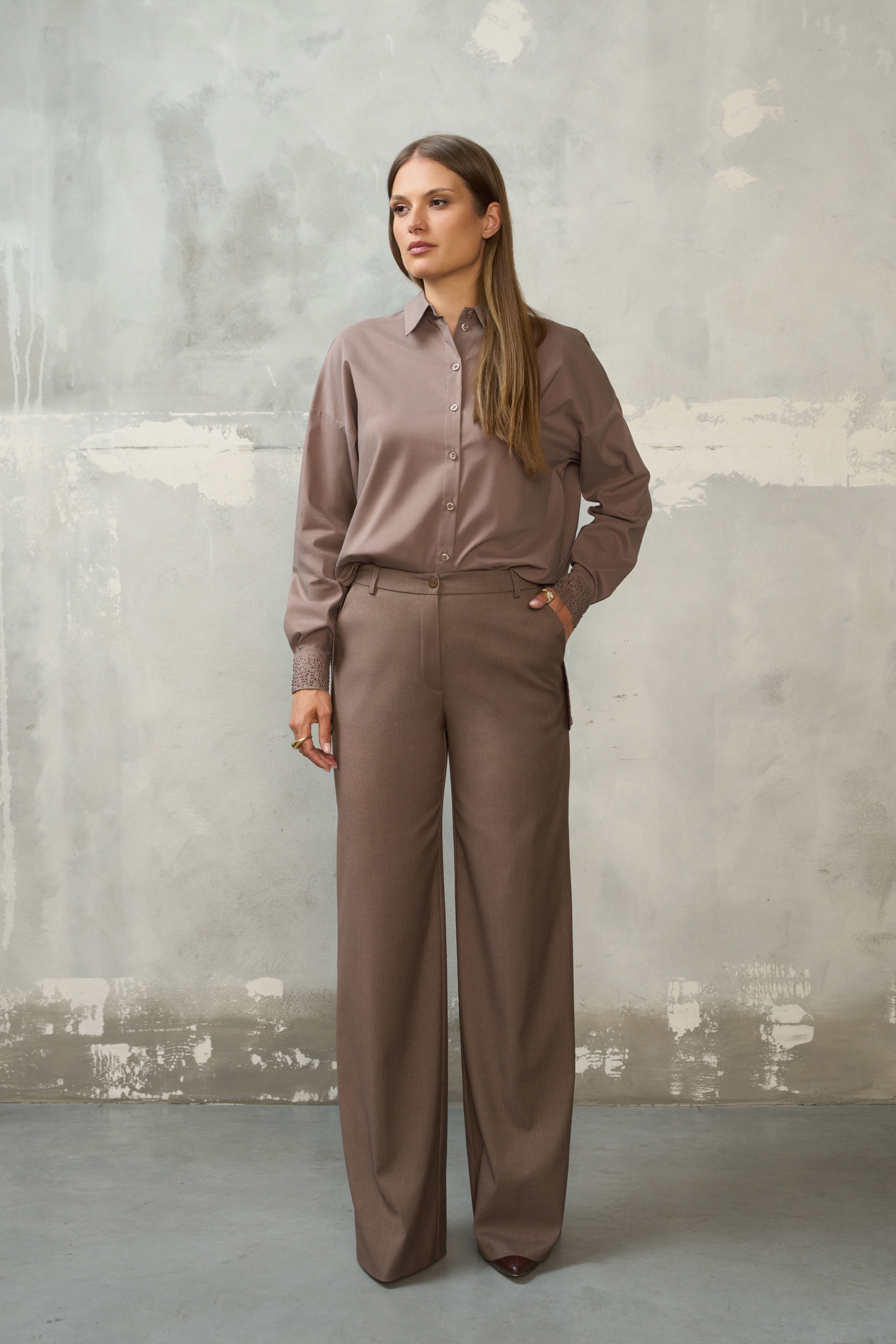 Koszula cappuccino z ozdobnymi mankietami