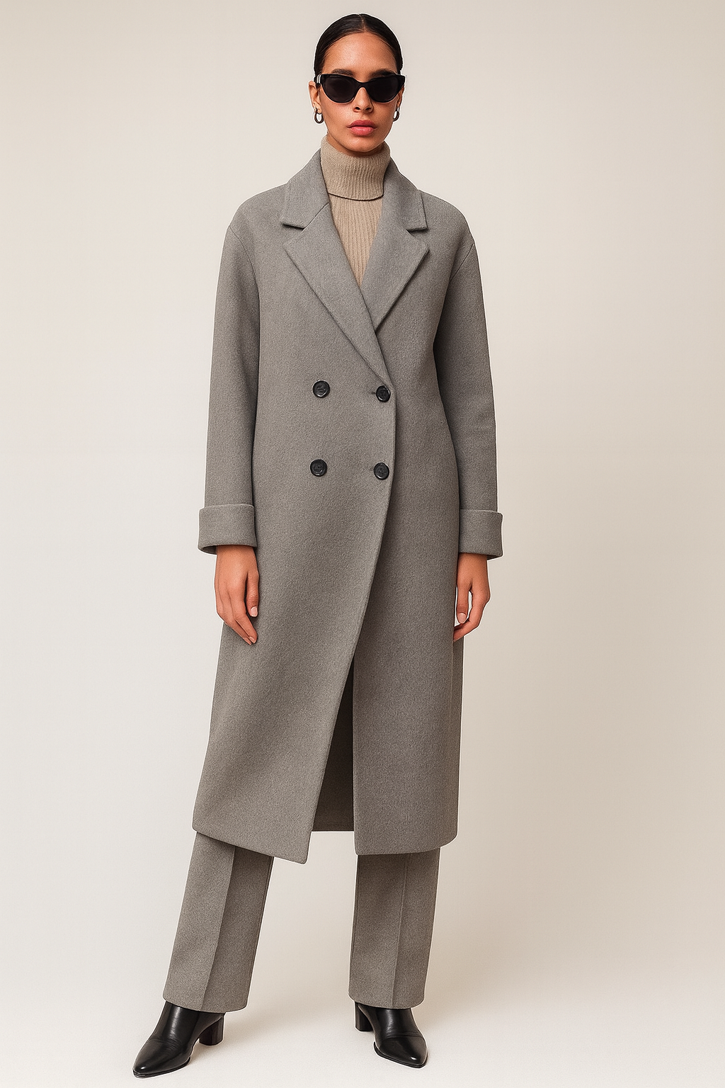 Ten płaszcz to definicja współczesnego luksusu – dyskretnego, ale widocznego w każdym detalu.